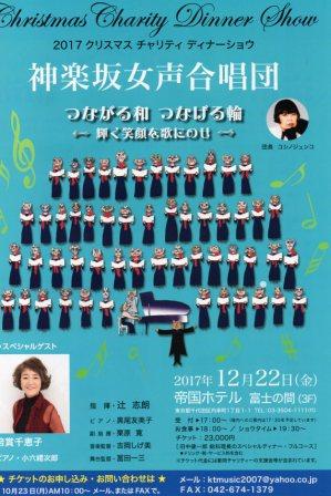 ホーム > WORKS > 12月22日神楽坂女声合唱団ディナーショウVOl.18 2017/12/10 今年も、12月22日に神楽坂女声合唱団のディナーショウが開催されます。18回目となる今年は、初となる帝国ホテル「富士の間」。チケットは即刻完売とのこと。吉岡は、10周年までは団員でしたが、その後は音楽監督と言う立場です。本人は、毎年、歌声を聞くのが楽しみなだけの音楽監督だと言っております。 お問い合わせはこちら B! LINEへ送る - WORKS